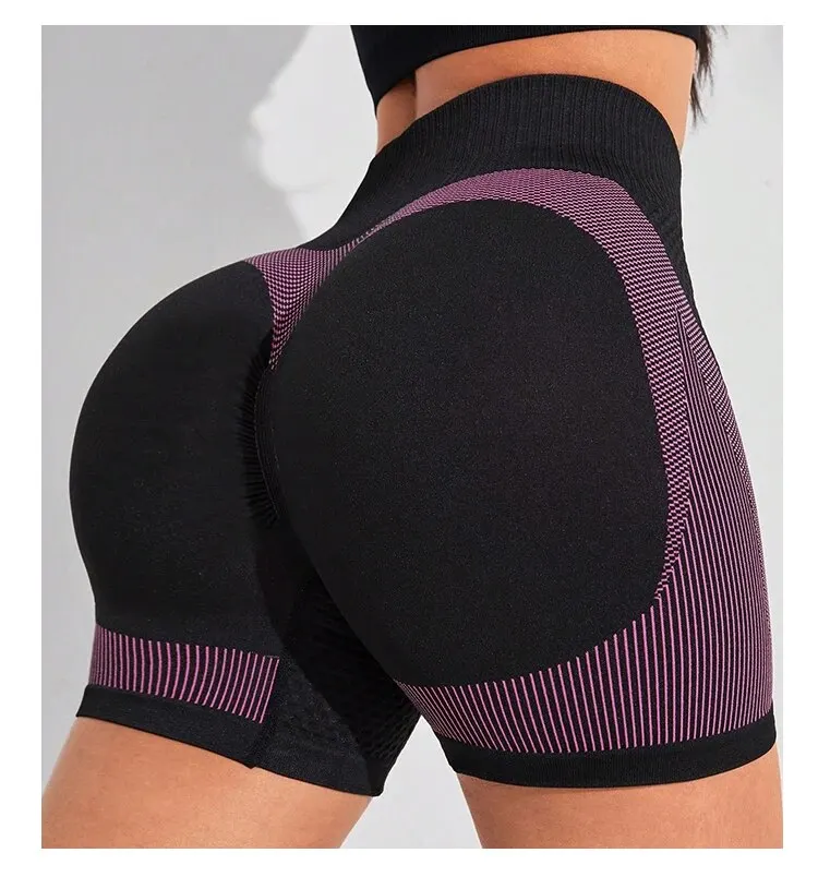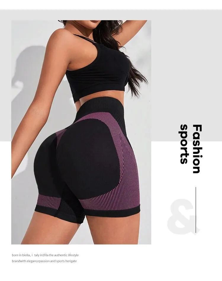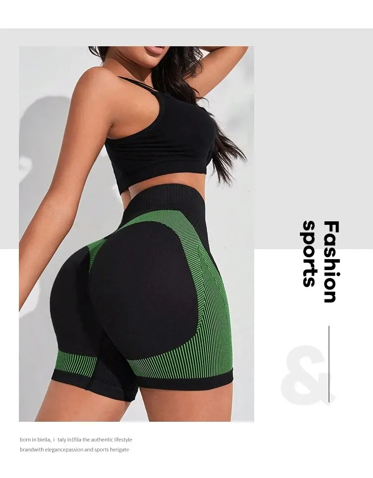 ? ¡Deslumbra en tus sesiones de yoga con nuestros Pantalones Cortos Deportivos de Cintura Ancha con Estampado de Rayas! ?